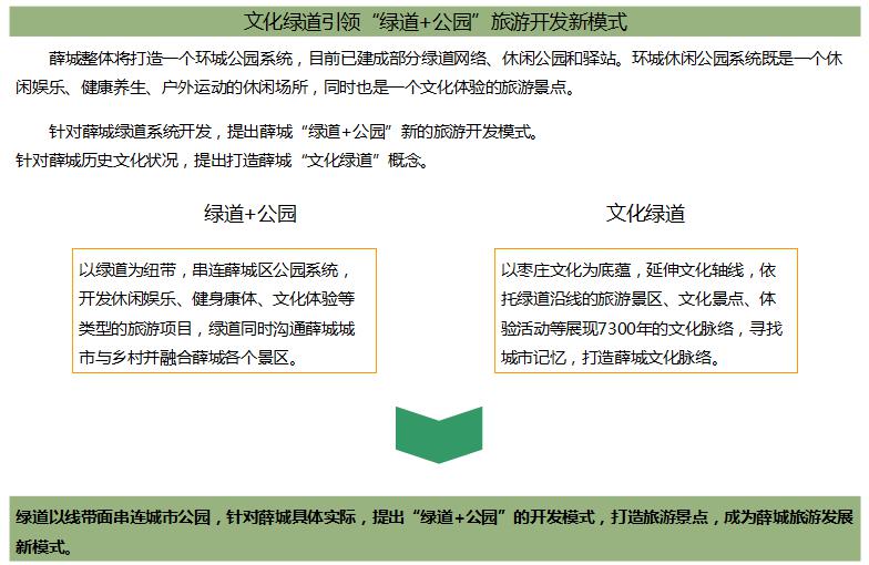 緊握新城建設新機遇,以文化綠道為基礎,以山水田園、城市森林、民俗村落為基底,以“始祖探源——棗莊七千年文化起點”為主題,開發休閑娛樂、鄉村旅游、文化體驗等類型的旅游項目,文化綠道溝通薛城城市與鄉村,與周邊旅游景點和公園組成城市休閑系統,最終將打造成為: